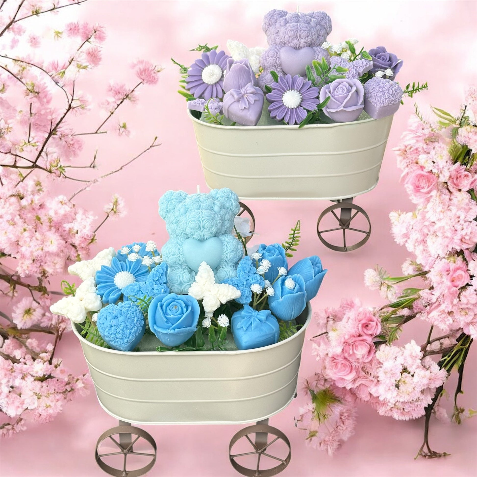 Bouquet Soy Wax Candles/Wax Melts In wagon Basket