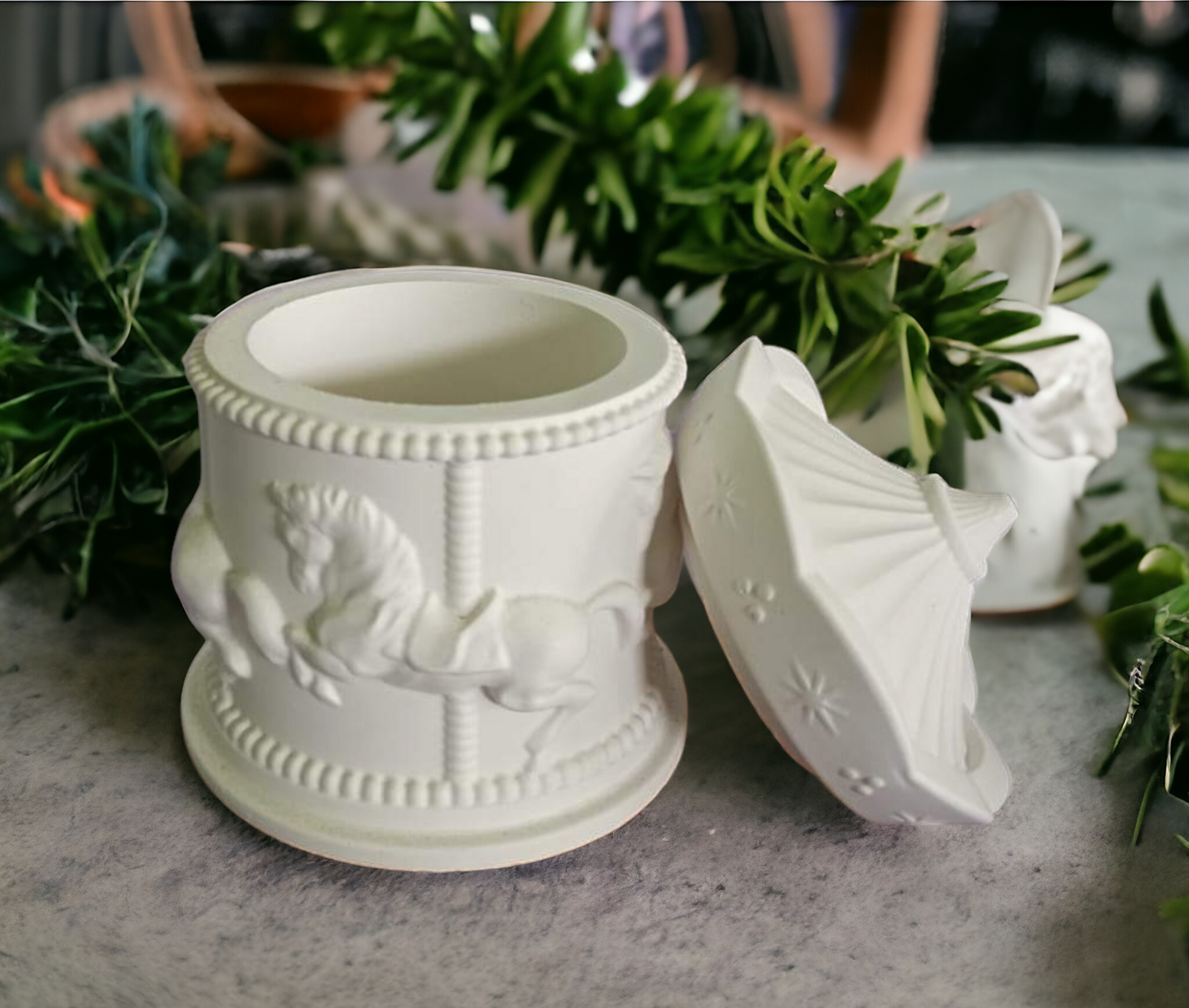 This Carousel Soy Wax Candle is the perfect addition to your home decor, whether it's for a nursery, office or any other room. Handmade and poured with care into a cute concrete jar, it will not only look great but also fill your space with sweet aromas of your choice. Key Features: - Handmade concrete jar - Infused with various scented candle aromas - 30 hour burn time Made from high-quality soy wax material and household candle type, this candle has a shelf life of 24 months. Plus, you can rest easy knowing that this product is CA Prop 65: Carcinogens-free. Enjoy the soothing ambiance created by this Carousel Soy Wax Candle as its flame flickers and illuminates any room in which it's placed. Choose from our wide variety of scents to find the perfect match for you or as a gift for someone special. Give yourself or loved ones the gift of relaxation and ambiance by getting one now!
