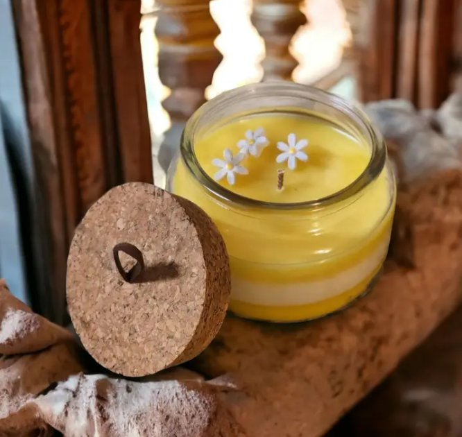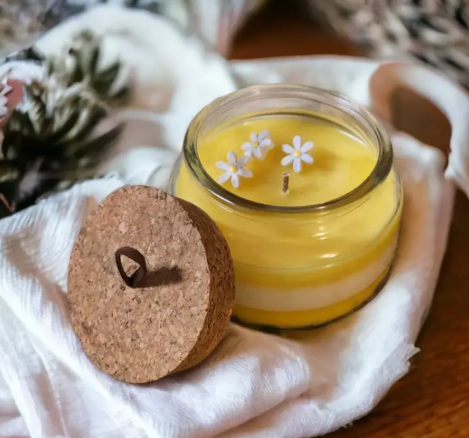 Daisy Soy Wax Candle With Cork Lid and Handle