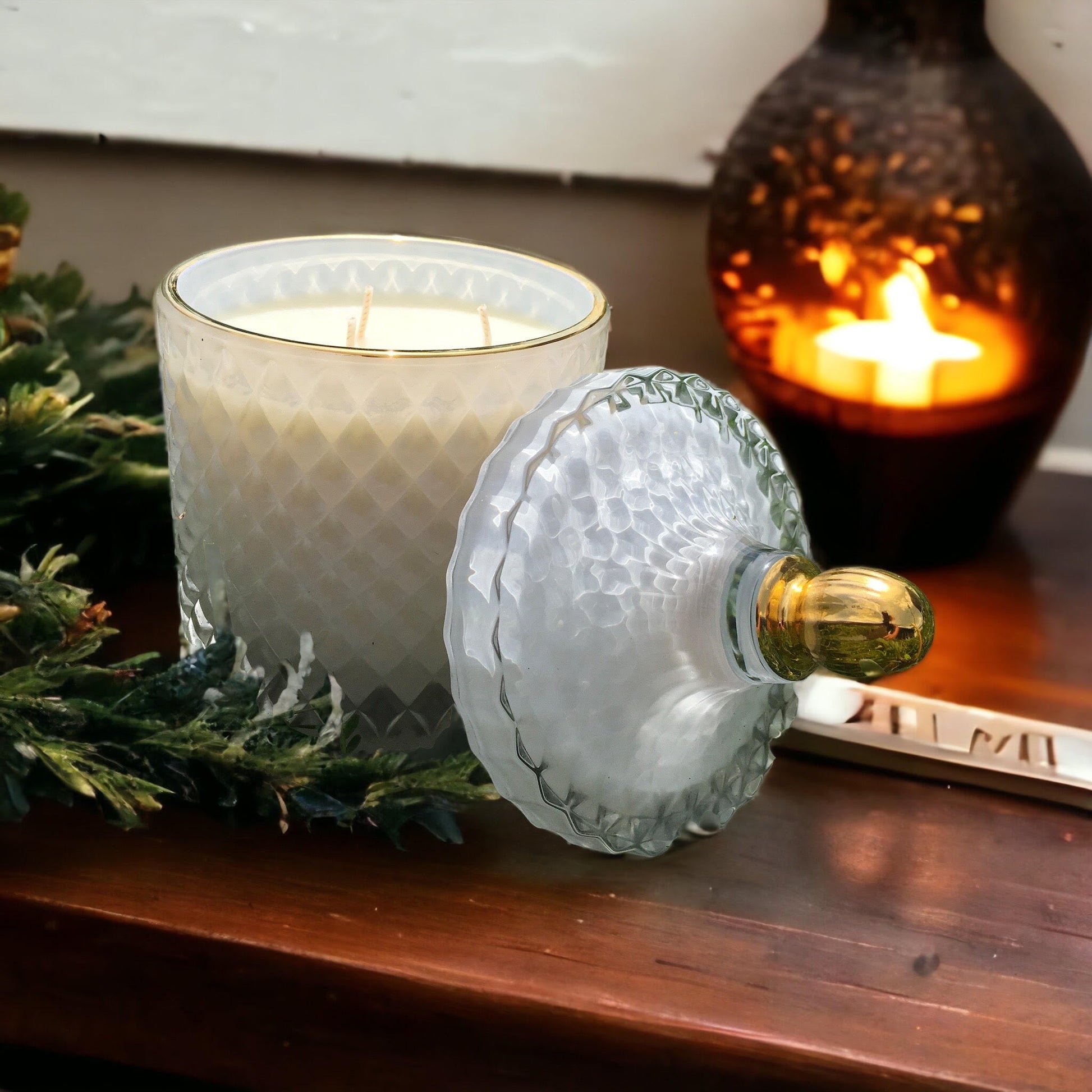 Elevate your holiday experience with the Luxe Collection soy wax candle. These elegant 16oz jars are the perfect showstopper, featuring a wooden lid and customizable options for your own logo. Enjoy the benefits of long-lasting, clean-burning soy wax in a beautiful and customizable package.