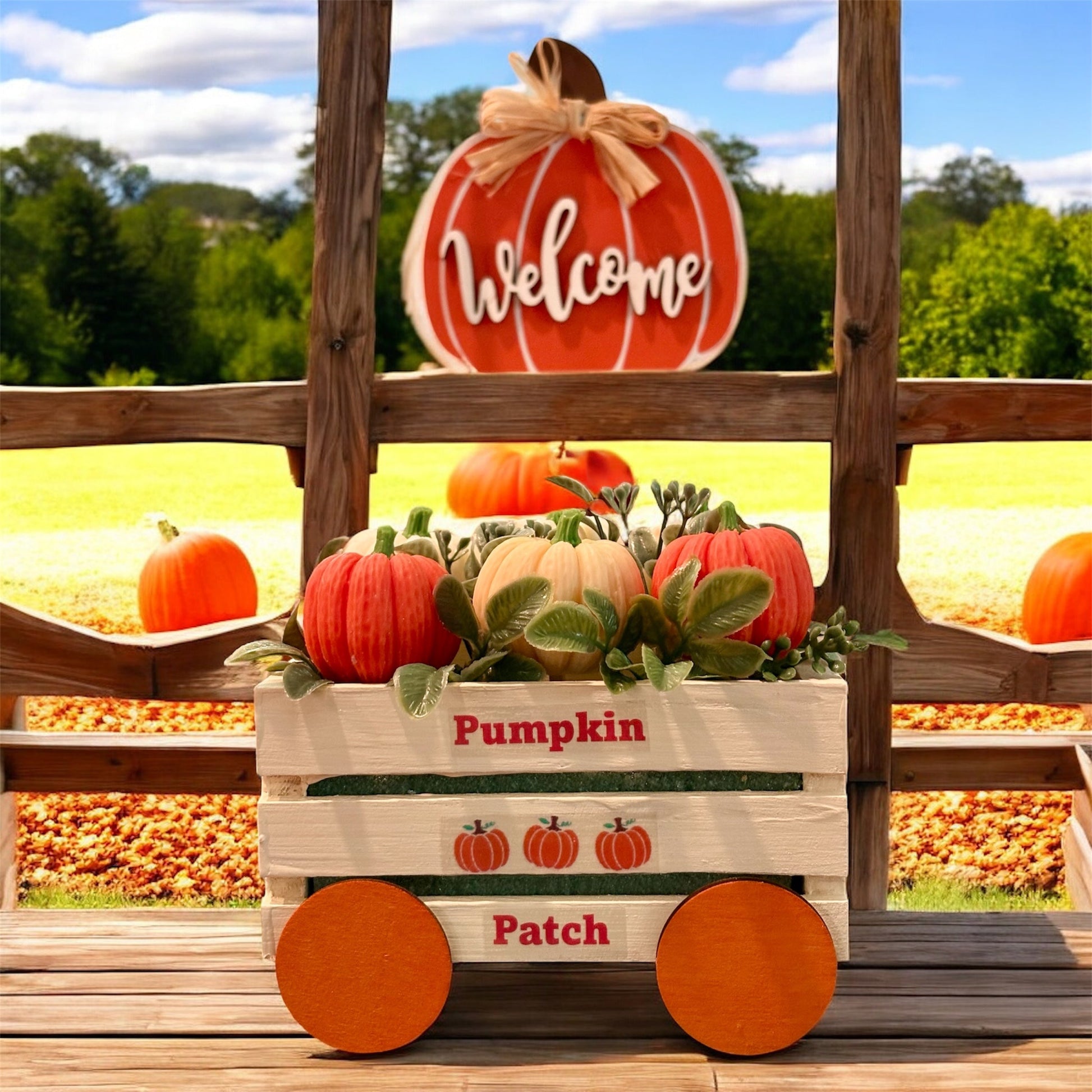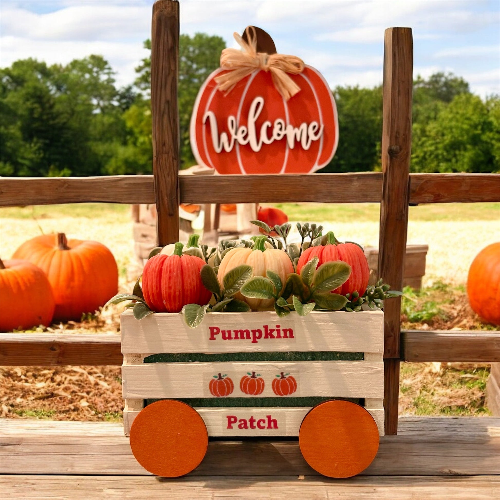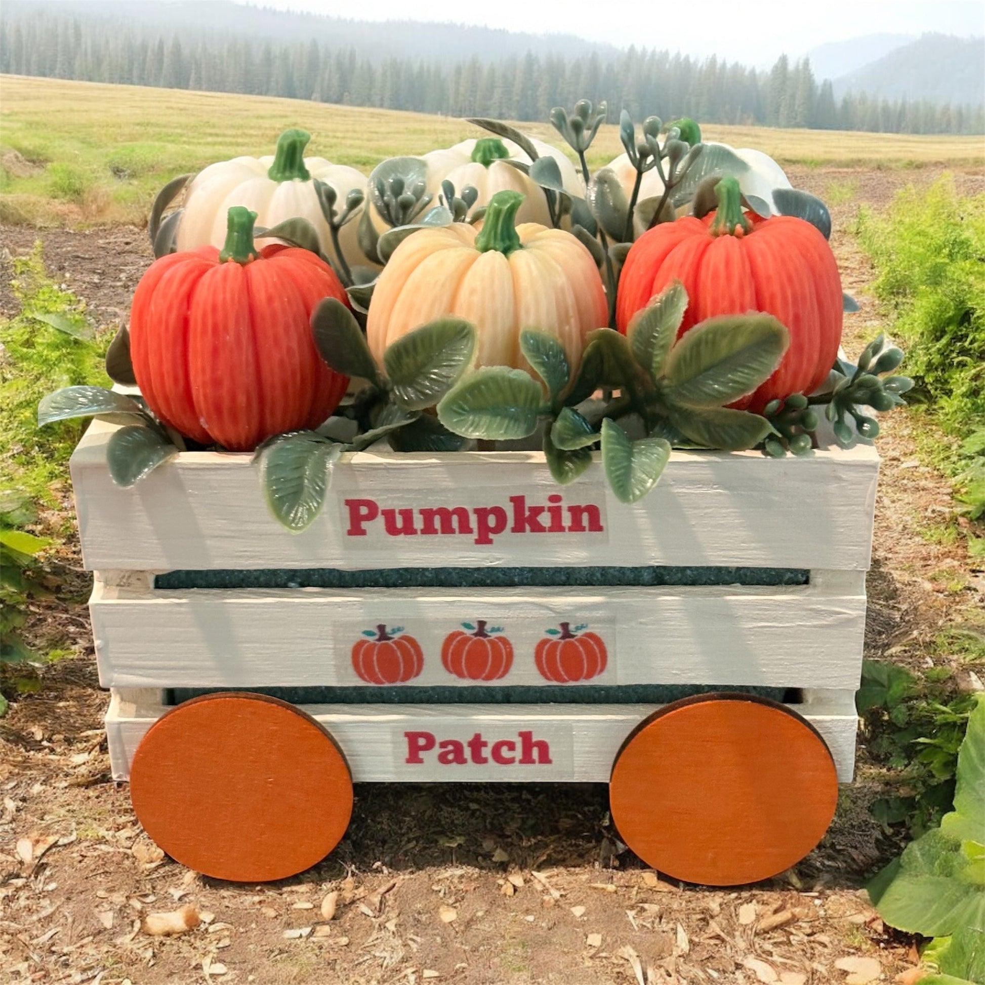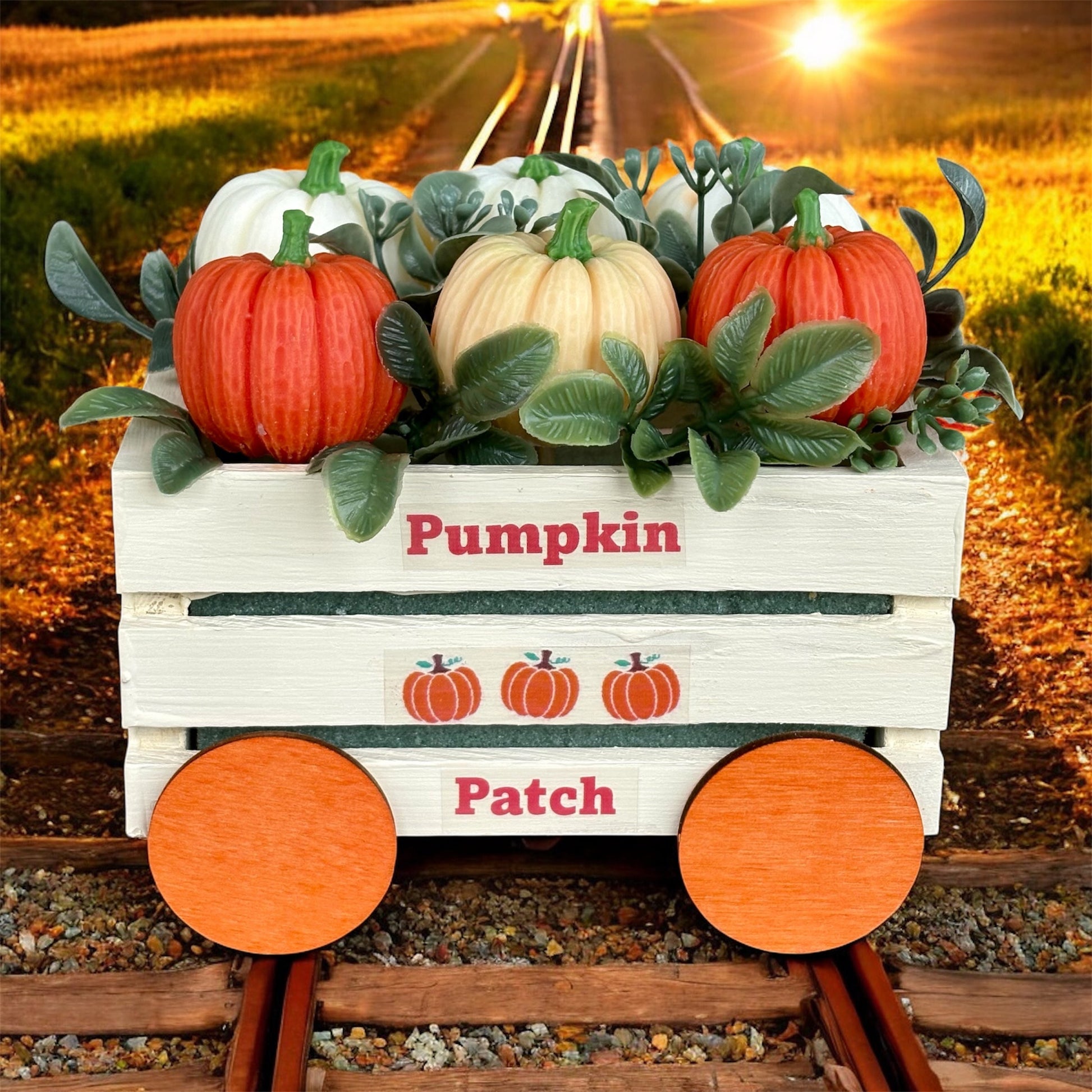 Bring the cozy charm of autumn into your home with our Pumpkin Patch Wax Melt Set! This delightful collection includes six 1oz pumpkin-shaped scented wax melts, beautifully nestled in a miniature wooden wagon for a rustic, seasonal touch.
