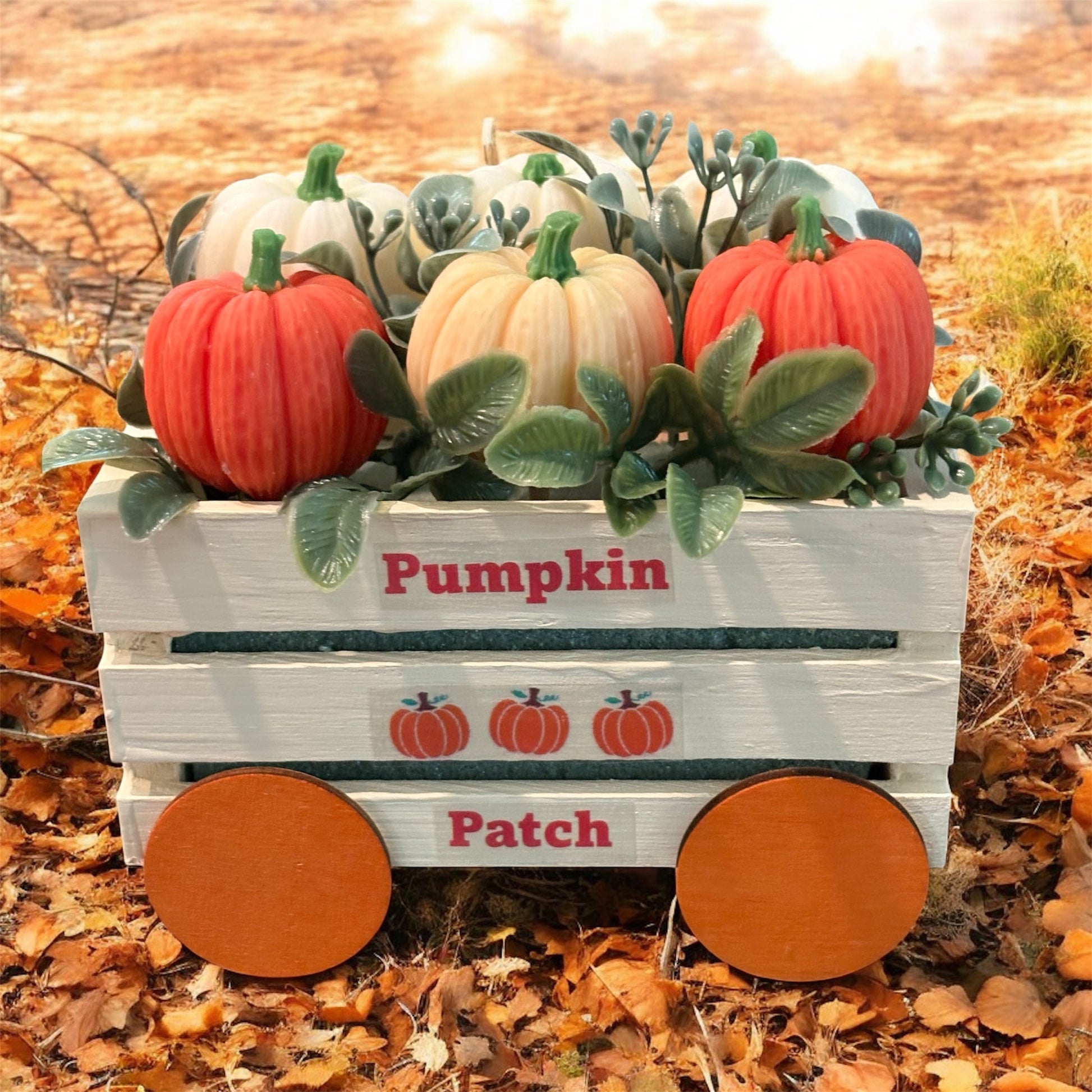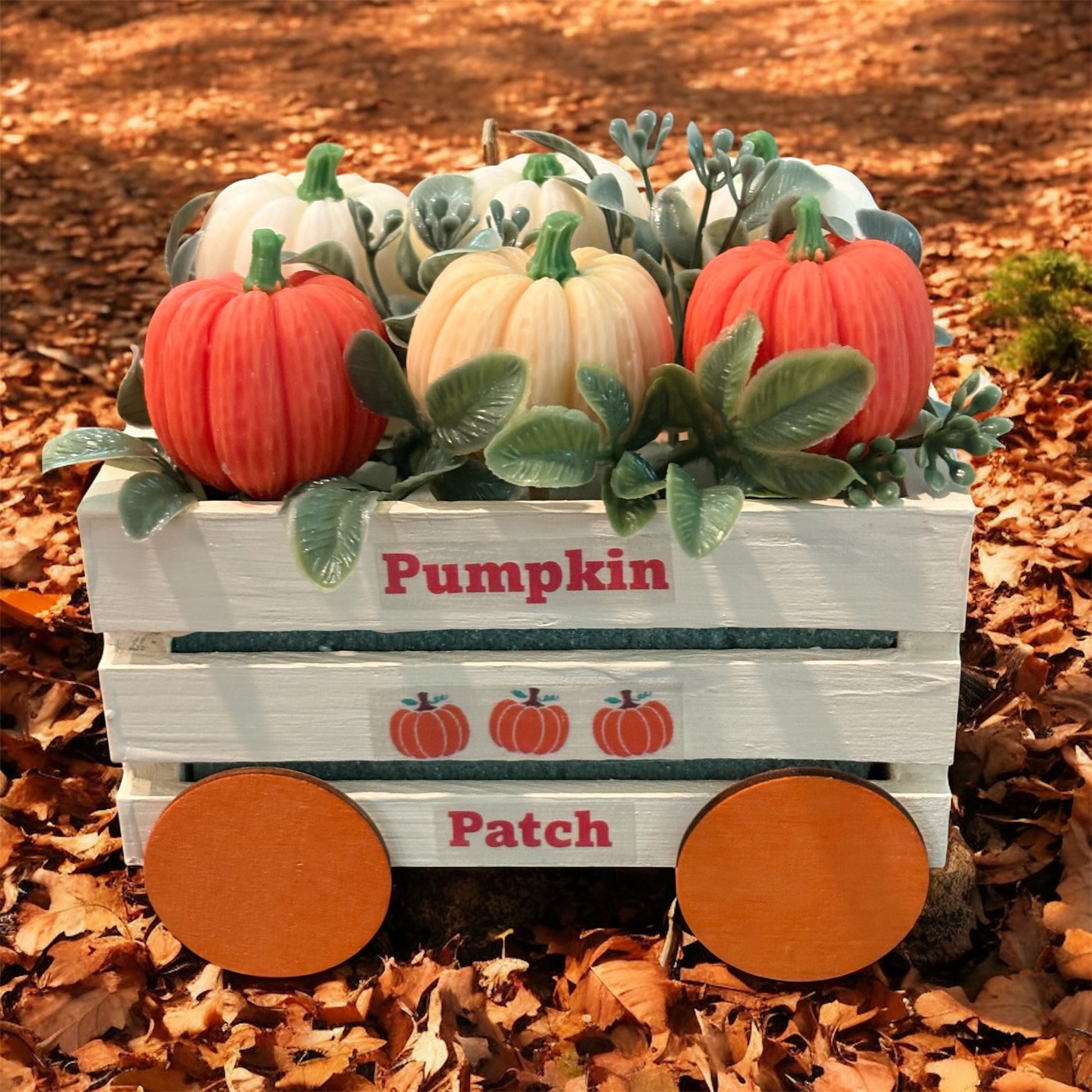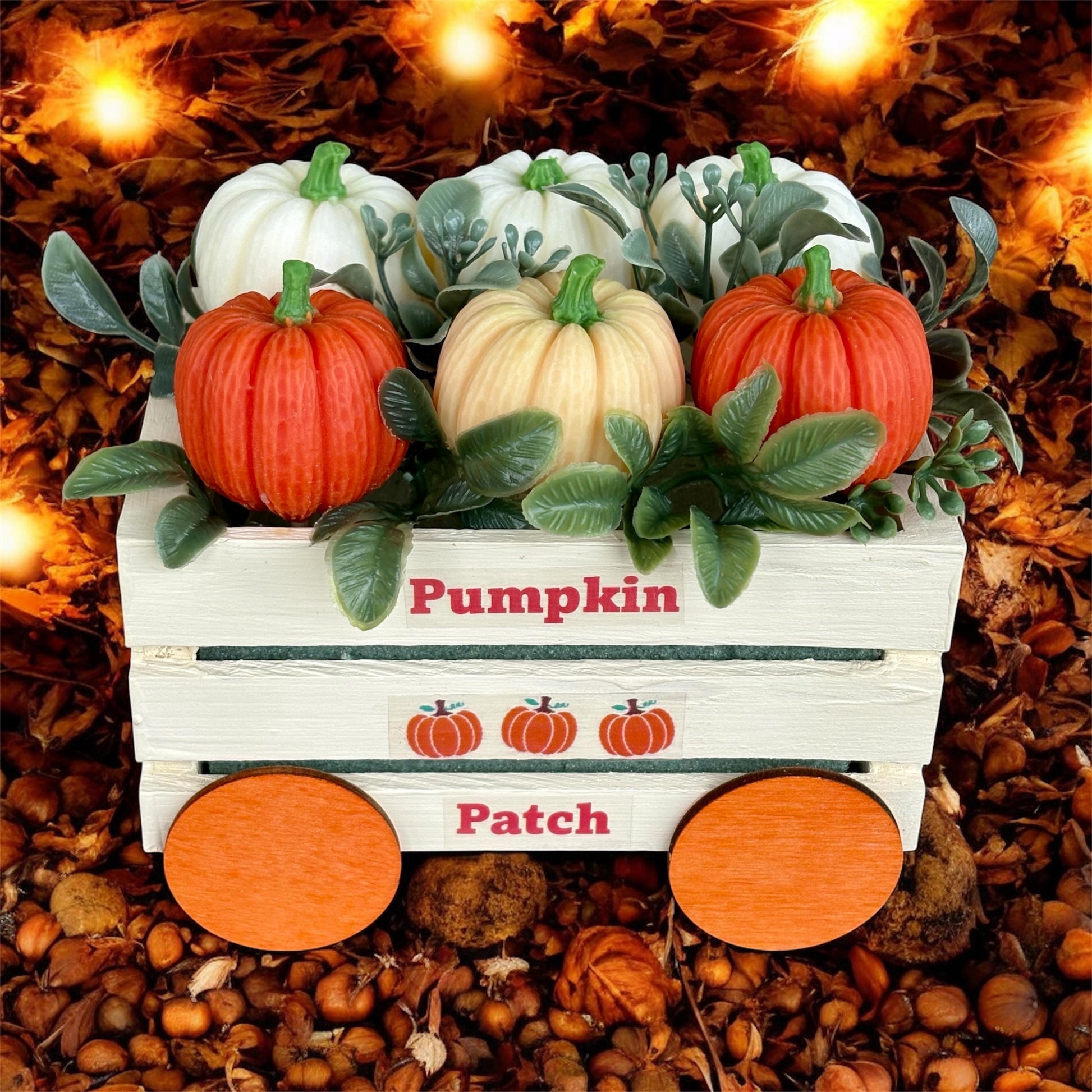 Pumpkin Patch Wax Melt Set – 6 Pumpkin-Shaped Scented Melts in Wooden Wagon
