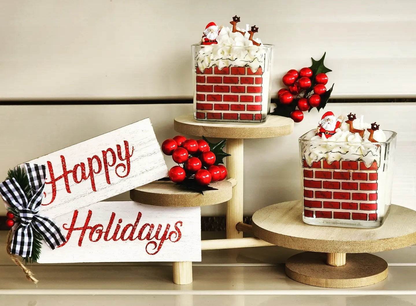 santa reindeers soy wax candle with holiday chimney design 16oz