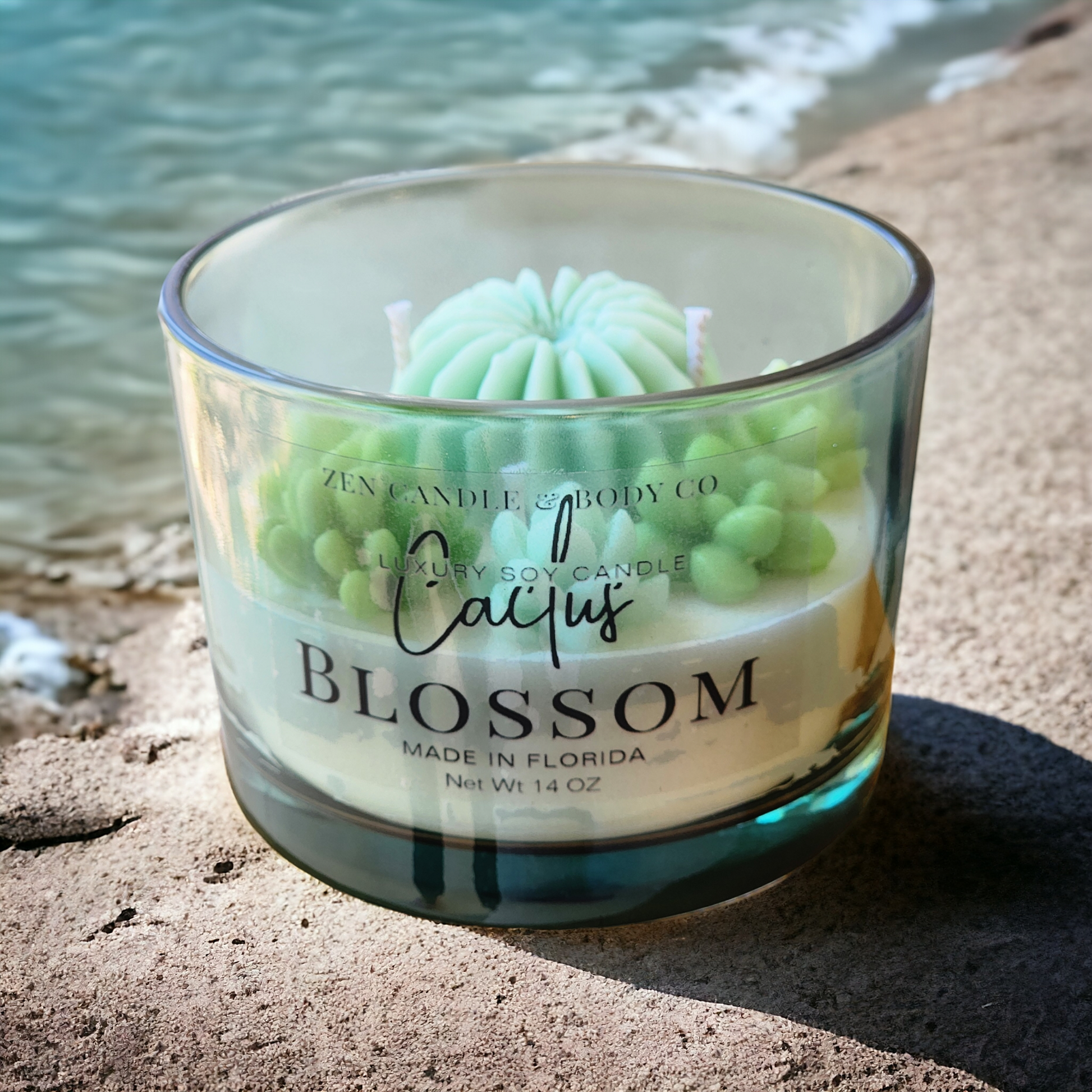 Experience the calming scent of our Succulent Scented Soy Wax Candle. Made with 100% soy wax, this 12oz candle is elegantly housed in a strong jar and topped with succulent wax embeds. The bamboo lid adds a touch of nature to enhance your relaxation.
