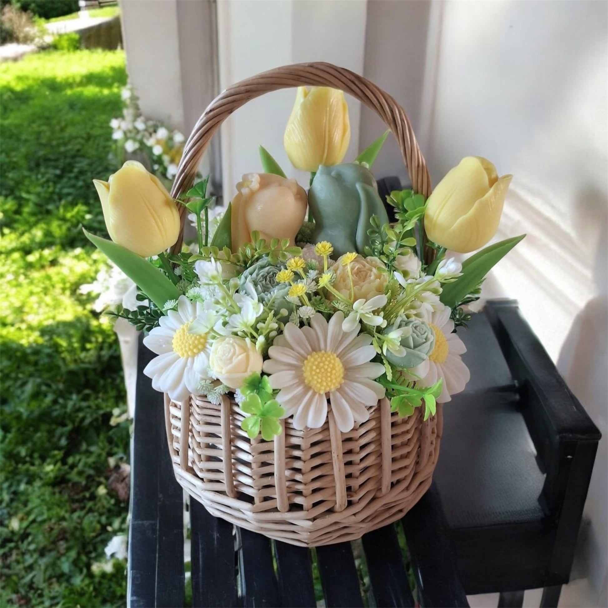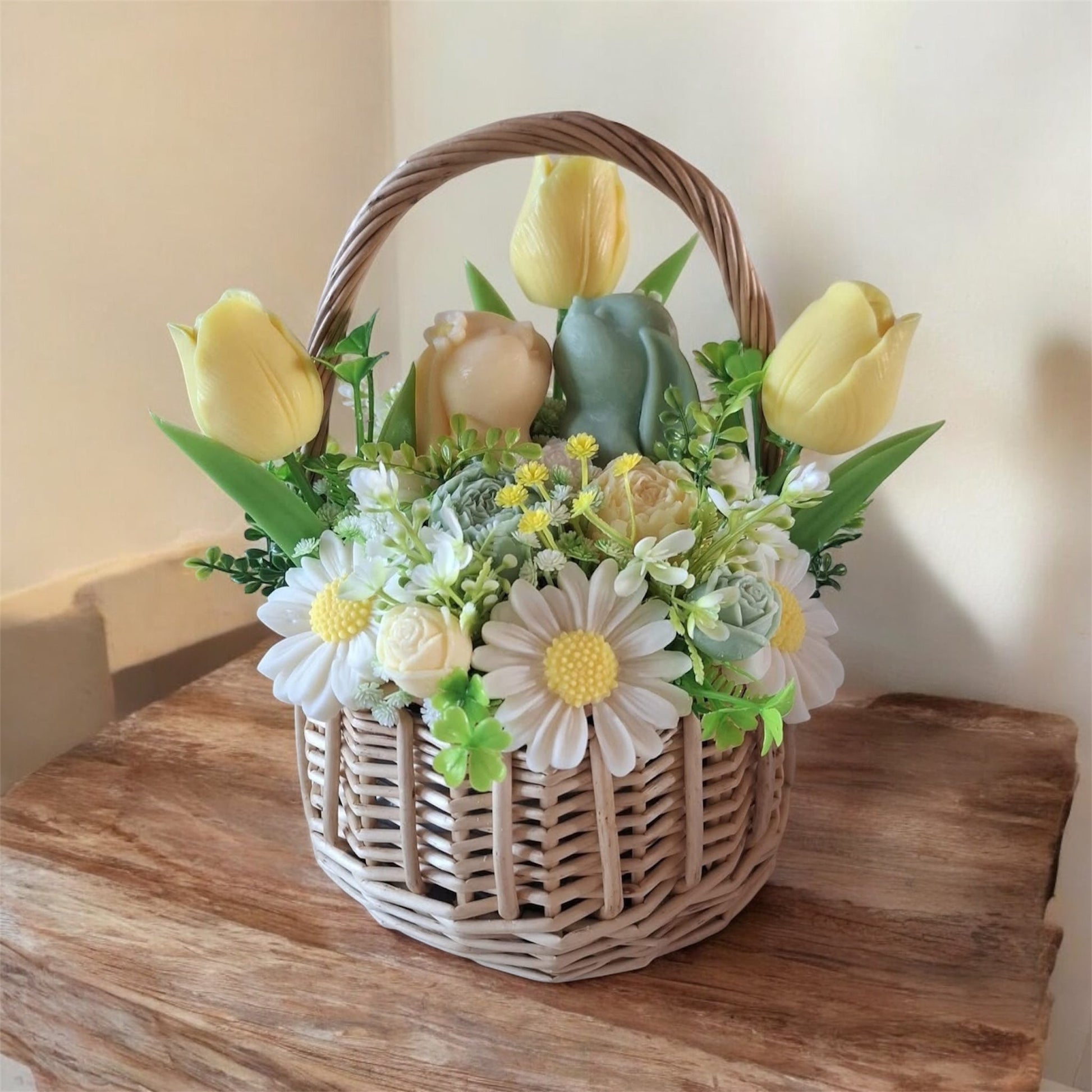 Experience the delicate scent of a your favorite aroma with our Wax Melt Soy Wax rose bouquet basket candles! Each 10-16oz bundle comes in a charming wicker basket with a handle, making it a beautiful addition to any room. Relax and indulge in the soothing aromatherapy benefits of this all-natural wax melt. Perfect for Mother's Day or Birthday!
